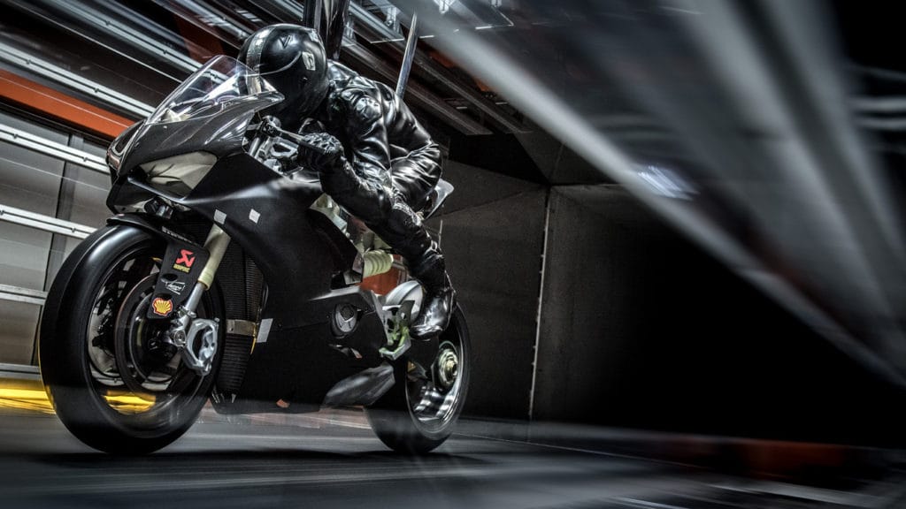 De Panigale V4 is de enige motor in het superbike segment die beschikt over een 90° V4 motorconfiguratie, en alsof dat nog niet volstond, kreeg het blok ook een contra-roterende krukas en ’twin pulse’ ontsteking (meer info hierover volgt verder in de tekst). Dit heeft een positief effect op de wendbaarheid van de motor. En voor wie het standaardvermogen nog niet genoeg is, voorziet Akrapoviç in samenwerking met Ducati Corse nog een volledig titanium uitlaat die het vermogen oppept tot 226 pk.