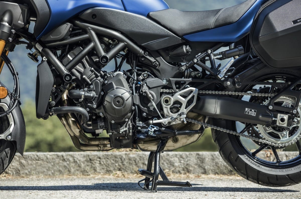 • 847 cc, driecilinder, vloeistofgekoelde, DOHC CP3 motor