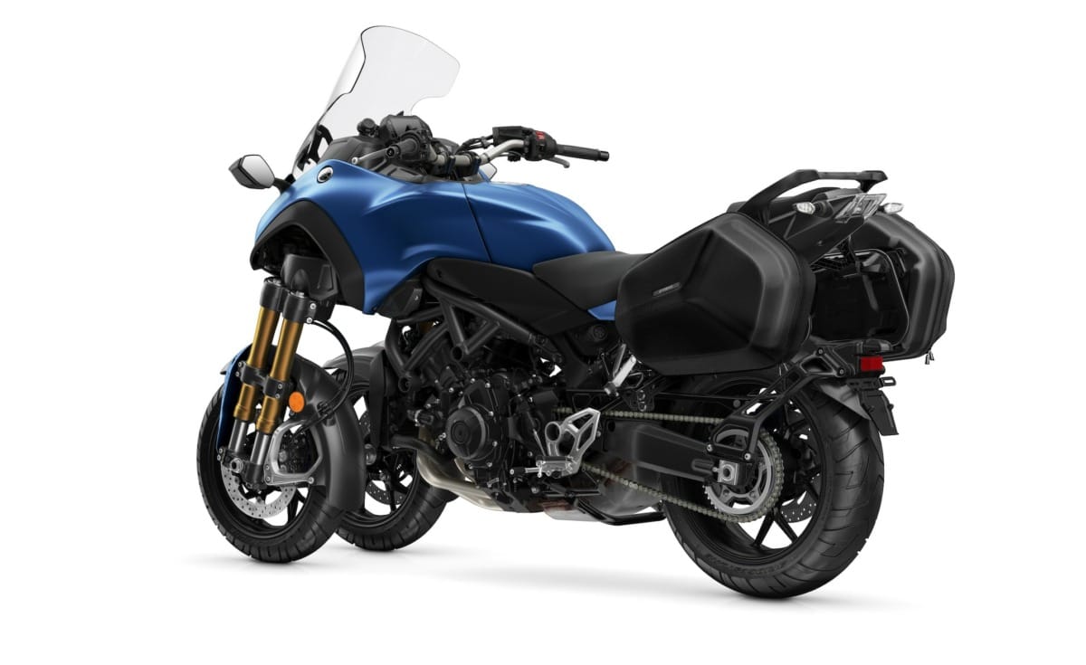 Dankzij de twee voorwielen en het radicaal vormgegeven kuipwerk zal NIKEN altijd in het middelpunt van de belangstelling staan. Bovendien is de nieuwe NIKEN GT leverbaar in twee nieuwe modelspecifieke kleurstellingen: Nimbus Grey met zwarte voorvork, en Phantom Blue met gouden voorvork.