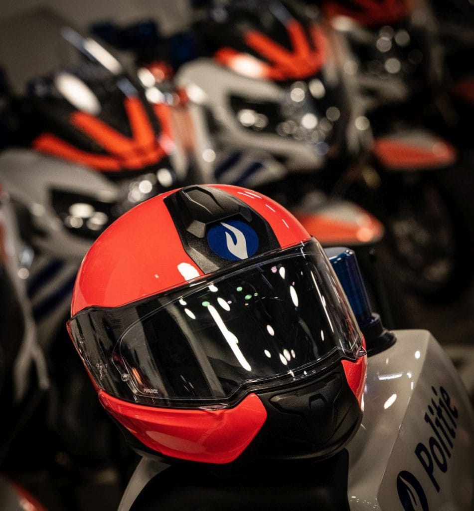De logistieke directie van de politie heeft in oktober ook zijn keuze bevestigd voor de BMW Motorrad Systemhelm, om zo alle federale, lokale en militaire politiediensten van een nieuwe motorhelm te kunnen voorzien. Deze helmen van de nieuwste generatie voorzien onze ordediensten van een grotere zichtbaarheid dankzij de felle oranje kleur. Ze zullen uitgerust worden met een geïntegreerd audiosysteem en wegen slechts 1,580kg. Deze helmen zullen geleverd worden vanaf begin 2019.