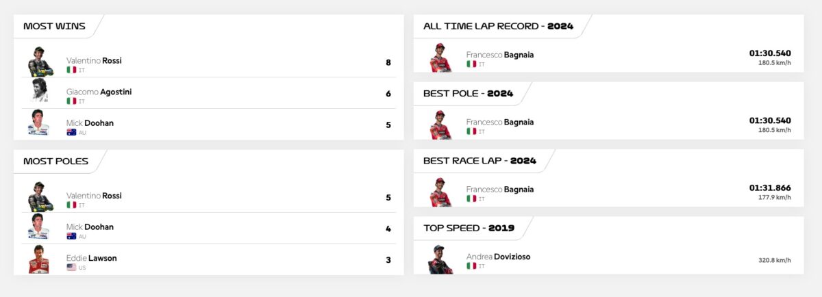 Die laatste behaalde wel opnieuw het podium na een zeer sterke Marco Bezzecchi die het uiterste uit z’n wendbare Aprilia wist te halen tegenover de krachtigere Ducati’s. Het tempo van de race lag wel lager dan vorig jaar en ook het ronderecord van Bagnaia bleef onaangeroerd, al konden de Italianen geen vuist vormen tegen de overmacht van Marquez die strategisch aan kop bleef rijden. Hoewel de kopgroep lange tijd bij elkaar bleef, dreef de oudste Marquez het tempo steeds zo op, dat er zelfs van een inhaalpoging geen sprake was. Met 9 overwinningen en 6 pole onder zijn riem, lijkt de Spanjaard dit jaar dus onklopbaar in de klassementsstrijd. Wat betreft de TT van Assen moet hij wel nog een hoop recordhouders voor zich dulden, we lijsten ze hier voor u op: