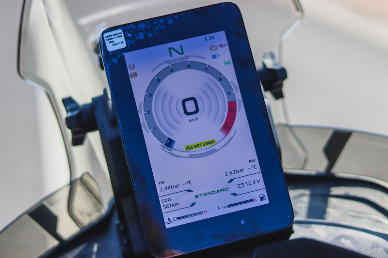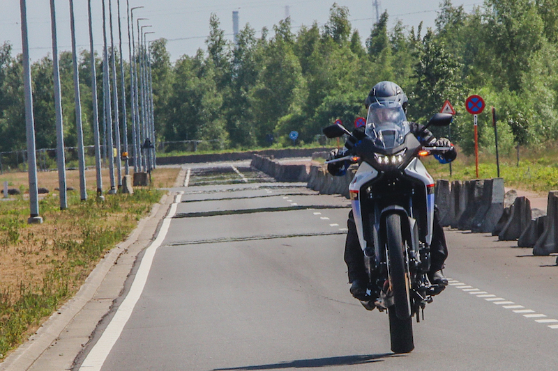 Wat de CFMOTO met z’n langere veren en iets hogere (en zwaardere) zwaartepunt mist aan stuurscherpte t.o.v. de Transalp, maakt hij goed met een extra dosis power. Het Oostenrijkse hart van deze Chinees klopt nog steeds erg passioneel en hard. Soms alleen iets te weinig soepel met een gasaanname die nogal twitchy kan zijn. Een probleem dat we exemplarisch tegenkomen bij CFMOTO, we kunnen enkel maar vermoeden dat dit softwarematig aan te passen is. Ook qua remkracht steekt de MT-X er met de dikste setup een eindje bovenuit en dus ontpopt hij zich tot de Rottweiler van de bende – iets zwaarder en logger, maar nooit gebrek aan power.