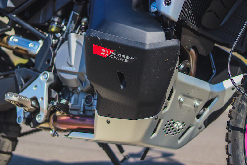 - CFMOTO: 48 mm USD-vork (230 mm), achtervering 230 mm; volledig instelbaar.