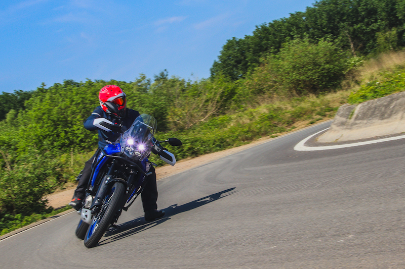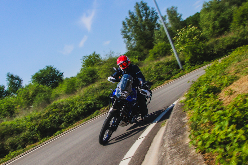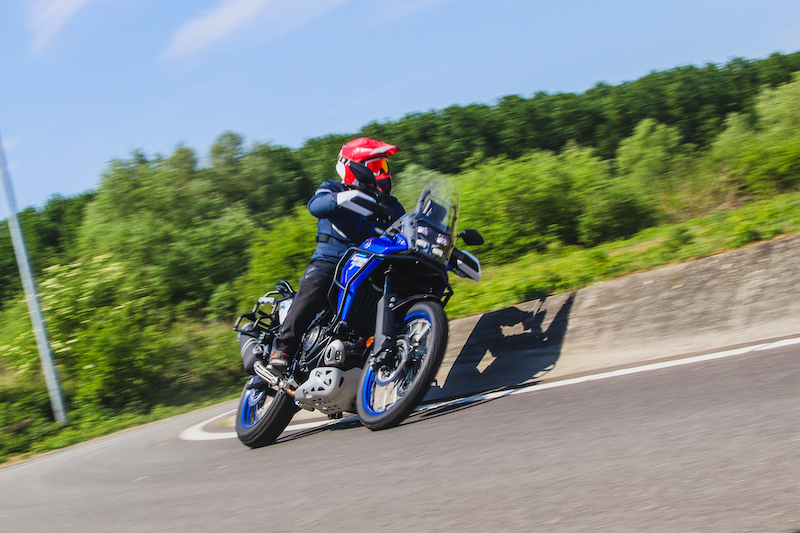 Da’s meteen zowat het tegenovergesteld van de Ténéré 700 die het moet hebben van z’n lichtvoetigheid. De Yam stuurt zeker niet verkeerd op het asfalt, en je zou hier je leven lang gelukkige verharde kilometers mee kunnen maken… zolang je nooit overstapt op de concurrenten. Zo licht als de Yamaha aanvoelt, zo soepeltjes als het CP2 motorblok aan het gashendel hangt, zo snel lopen de Honda en de CF uit bij acceleraties en ook bij stevige remacties delft de Ténéré het onderscheid. De langere veerwegen  en overall lichtere bouw komen minder goed tot uiting op perfect asfalt, al verandert het verhaal snel wanneer we slechtere wegen aandoen en al helemaal als we richting de Sahara trekken.