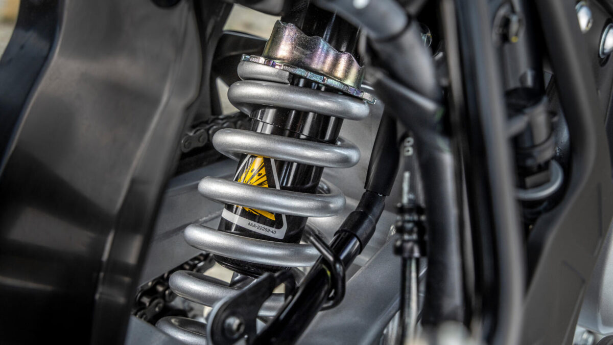 De soepele vering en het wendbare chassis werken in harmonie met het motorblok en maken de WR125R zeer capabel, zelfs op ruw terrein. Het semi-dubbele wiegframe zorgt voor een geweldig gevoel op gevarieerde ondergronden, zelfs bij hogere snelheden. De wielophanging bestaat uit een 41 mm KYB-voorvork en een gekoppelde Monocross-schokdemper om oneffenheden soepel op te vangen en doorslaan te voorkomen. De setup zorgt voor stabiele ritten, zowel on- als off-road. De configuratie met een 21-inch voorwiel en 18-inch achterwiel zorgt voor nog meer controle op uitdagend terreinen. Deze configuratie wordt toegepast in het volledige assortiment Adventure-motorfietsen van Yamaha om uitstekende off-roadprestaties te bieden.