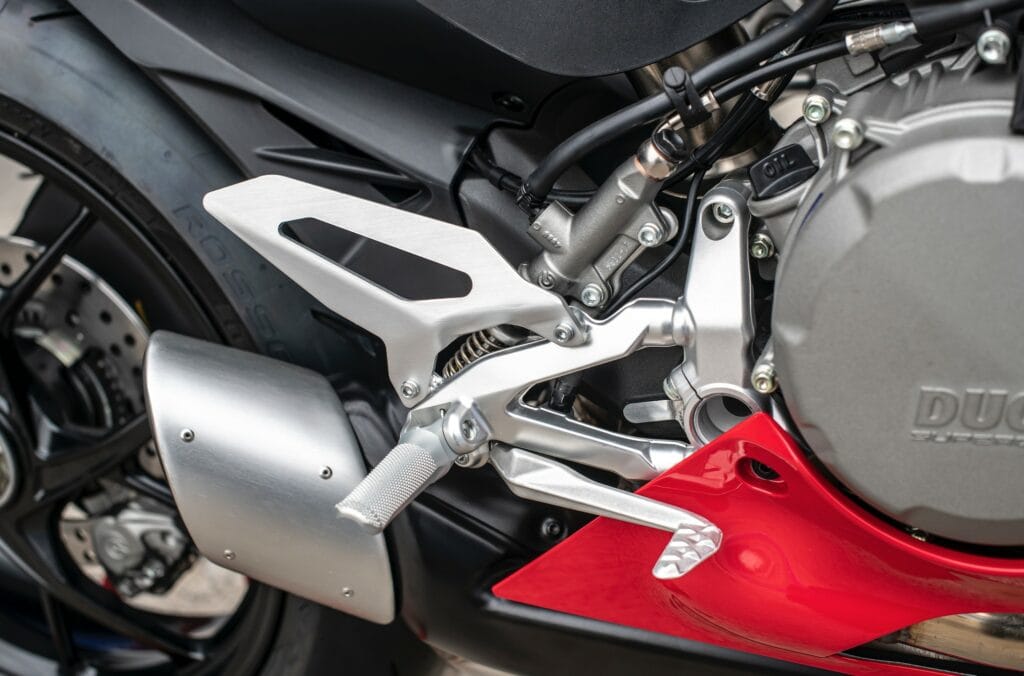 De dubbelzijdige achterbrug maakt plaats voor een enkelzijdig exemplaar waardoor het mooie achterwiel met vijf Y-vormige spaken volledig zichtbaar wordt. Voor buitenstaanders wordt het knap lastig om de twee- en de viercilinder nog van elkaar te onderscheiden. Het verschil met de v4 is nauwelijks merkbaar, en dat is ook de bedoeling. Met de 748, de 749 en de 848 hield Ducati jarenlang vast aan een traditie van middenklasse superbikes die allemaal als twee druppels water op hun zwaardere broertjes leken. Enkel de 899 en 959 braken met die traditie. Volgens Ducati wilden de fans van het ‘lichtere’ segment liever opnieuw een kleine variatie van de echte superbike en dus keren de Italianen terug naar de traditionele formule.