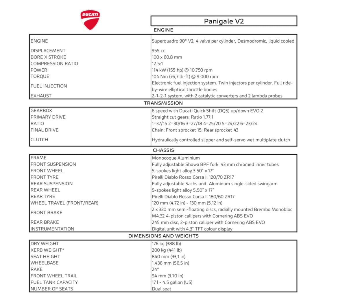 Een compleet nieuwe motor is de V2 allerminst, de opvallendste wijzigingen zitten vooral aan de buitenzijde. Compactheid is het sleutelwoord tijdens het pr-praatje. Het uiterlijk van de nieuwe baby-Panigale oogt veel smaller en valt niet meer te vergelijken met dat van zijn voorganger, de 959. Zo erft de V2 de kopkuip met de twee wijd opengesperde luchthappers integraal van zijn grote broer. Een andere ingrijpende verandering is de belly-pan uitlaat die de opvallende dubbele einddempers van de 959 komt vervangen. De lange pijpen worden ingeruild voor een demper onder het blok en enkel het korte einddempertje net onder de rechter voetsteun verraadt zijn aanwezigheid.