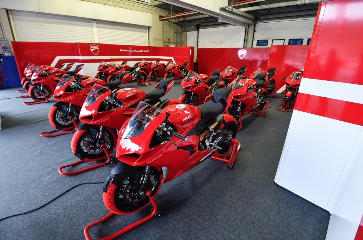 Terwijl ik deze woorden typ, ben ik nog steeds aan het nagenieten. Wat een adembenemende baan. Door de vloeiende layout gecombineerd met perfect asfalt is ze eigenlijk niet eens zo moeilijk om aan te leren. De ideale speeltuin om met een performante sportmotor te gaan ravotten. Het mag dus geen toeval heten dat de Ducati-crew deze locatie uitkoos voor de introductie van hun nieuwste telg in de Superbike-familie. Na de ontvangst in de ronde lounge die boven het circuit hangt als een vliegende schotel krijgen we een korte technische presentatie