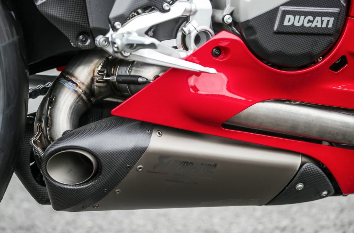 De dubbelzijdige achterbrug maakt plaats voor een enkelzijdig exemplaar waardoor het mooie achterwiel met vijf Y-vormige spaken volledig zichtbaar wordt. Voor buitenstaanders wordt het knap lastig om de twee- en de viercilinder nog van elkaar te onderscheiden. Het verschil met de v4 is nauwelijks merkbaar, en dat is ook de bedoeling. Met de 748, de 749 en de 848 hield Ducati jarenlang vast aan een traditie van middenklasse superbikes die allemaal als twee druppels water op hun zwaardere broertjes leken. Enkel de 899 en 959 braken met die traditie. Volgens Ducati wilden de fans van het ‘lichtere’ segment liever opnieuw een kleine variatie van de echte superbike en dus keren de Italianen terug naar de traditionele formule.