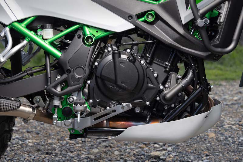 Een 180° paralleltwin is een ongebruikelijke keuze voor een allroad, voornamelijk omwille van het hoogtoerige karakter waarbij er onderin minder koppel te rapen is. Dat neemt niet weg dat de 451cc twin heel lineair is met een goed doseerbare gasrespons en power op mensenmaat. De trillingen in hoge toeren moet je voor lief nemen, je krijgt er vooral een bewezen recept voor in de plaats.