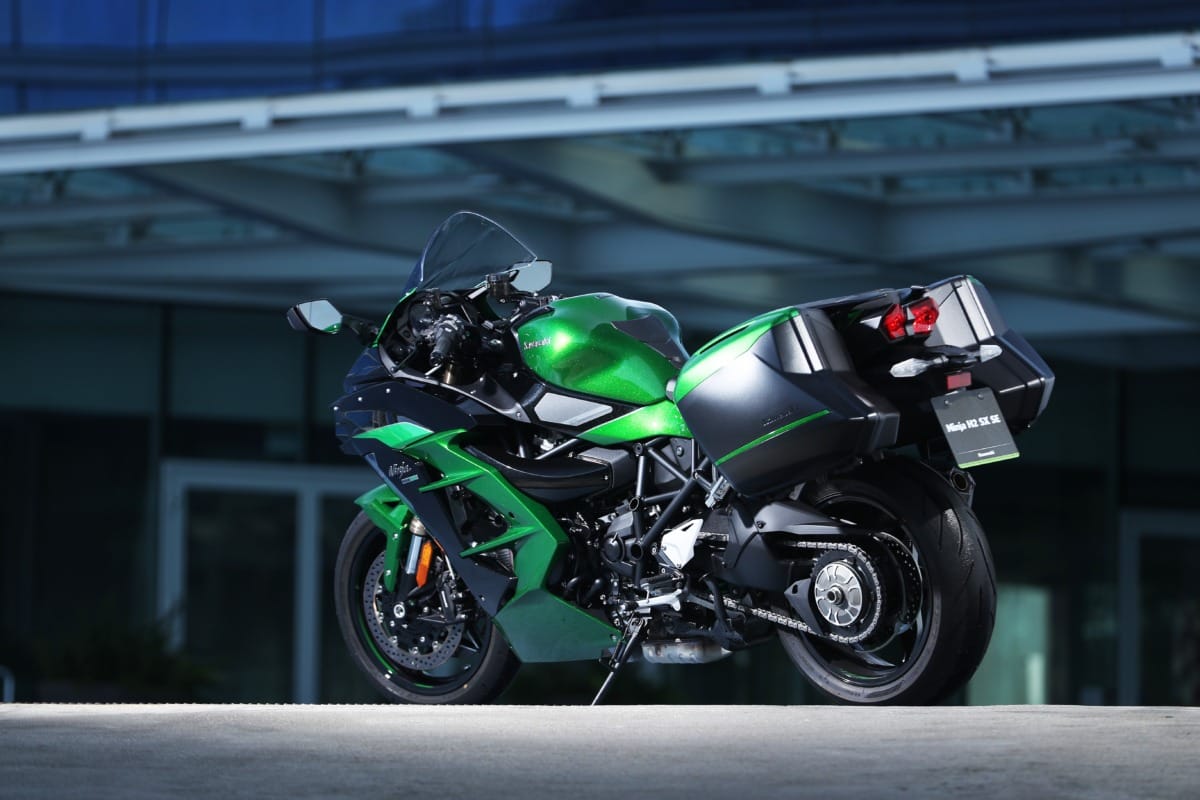 Een comfortabele zithouding (voor rijder en duo), grote zijkoffers waarin een helm past (optioneel aan 850€) en een goede windbescherming zijn nog steeds het succesrecept voor eender welke toerfiets. Op de H2SX SE krijg je er -naast 200pk – ook cruise controle, 3 rijmodi, instelbare tractiecontrole, een full LCD display, een slipperkoppeling, full LED-verlichting met cornerlights, een quickshifter en verwarmde handvatten bij. Het enige verschil met andere toermotoren in deze prijsklasse is dat je de vering niet elektronisch kan regelen.