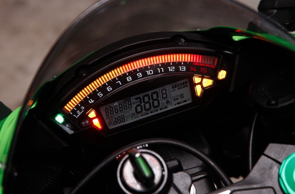 OK, je mag dan wel een gloednieuw blok hebben, maar dat verkoopt toch net wat vlotter als alles in een nieuw jasje zit? “Fuck dat” dachten ze bij Kawa en dus moeten we het stellen met het bekende design en dashboard. Alle elektronica (Tractiecontrole, quickshifter, ABS, etc.) is makkelijk in te stellen, al ziet het er wel wat verouderd uit tegenover de moderne kleuren-TFT’s die we bij de concurrentie zien.