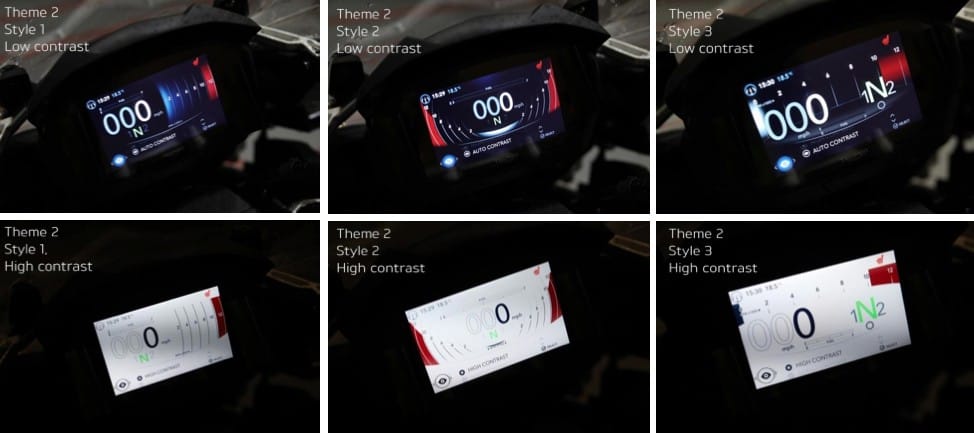 De XCa en XRt beschikken over tractiecontrole, ride-by-wire, cruise controle en instelbaar ABS. Al deze snufjes zijn naar wens in te stellen in een Rider-modus, al beschik je sowieso over vijf voorgeprogrammeerde modi. Daarbij vind ik vooral de ‘offroad pro’ modus een mooie vondst van het marketing-departement, want hierin worden alle rijdershulpjes gewoonweg uitgeschakeld. Om extra te pronken met het TFT-dashboard, beschik je over maar liefst zes (!) verschillende dashboard layouts. Misschien hebben de ICT-freaks bij Triumph zich net een beetje te hard laten gaan…