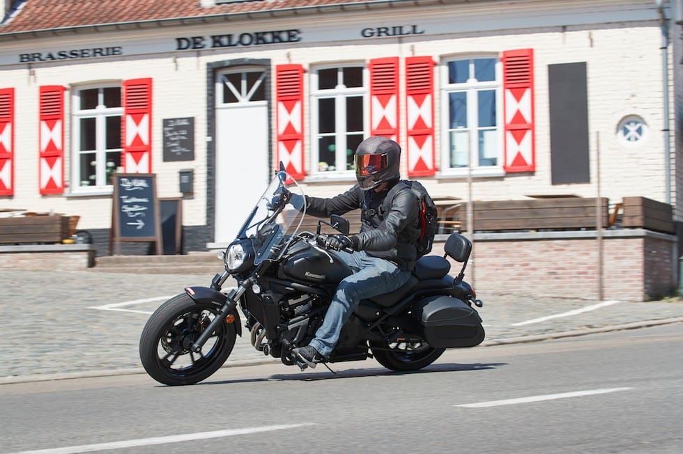 Onlangs kon ik de laatste nieuwe versie van de Vulcan uittesten in de Vlaamse Ardennen en hoewel er weinig groot nieuws was, viel dat reuze mee. Nu zullen de cruiser-puristen hem ongetwijfeld ‘een gebrek aan karakter’ toeschrijven, al kan dat spoedig opgelost worden door hier en daar enkele moertjes en bouten half los te draaien of misschien wat vlammen op de benzinetank te airbrushen. Wie gewoon op zoek is naar simpel, betrouwbaar rijplezier zal daarentegen aangenaam verrast zijn door het leuke paralleltwinnetje en soepel sturende rijwielgedeelte. Zelfs op de meest afgeleefde kasseiwegen hield de vering goed stand, terwijl de Vulcan in het betere bochtenwerk gerust meekan met een hoop niet-cruisers.